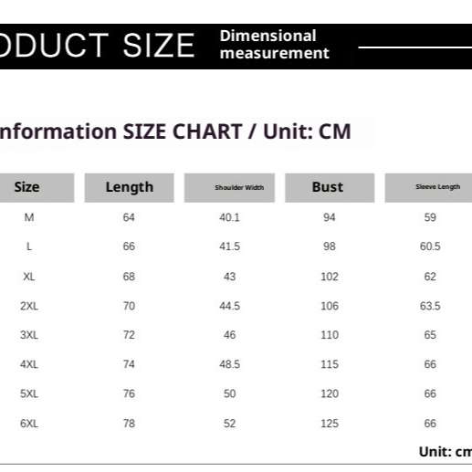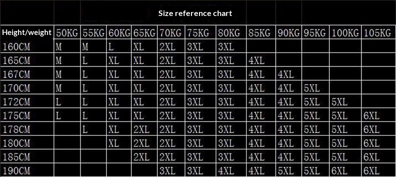 Sizes: M, L, XL, 2XL, 3XL, 4XL, 5XL, 6XL